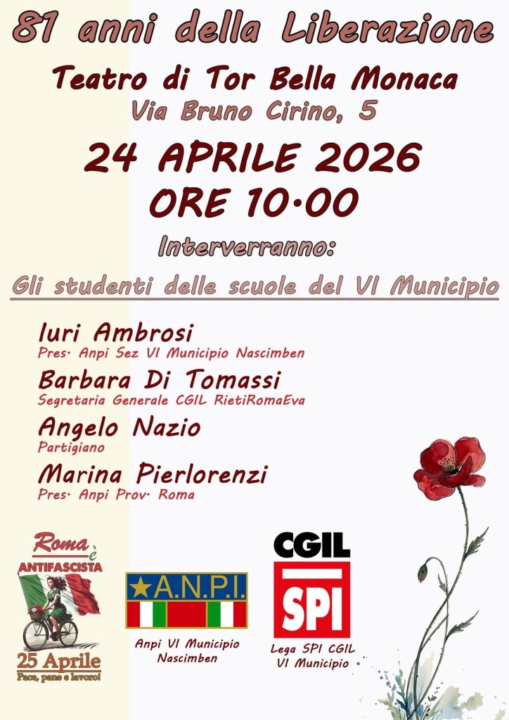 ANPI VI Municipio “Nascimben”, insieme al partigiano di Torre Maura, Angelo Nazio, ed agli studenti del VI Municipio parleremo della Resistenza, della Costituzione e celebreremo gli 80 anni dal Referendum istituzionale che portò l’Italia a diventare una Repubblica.