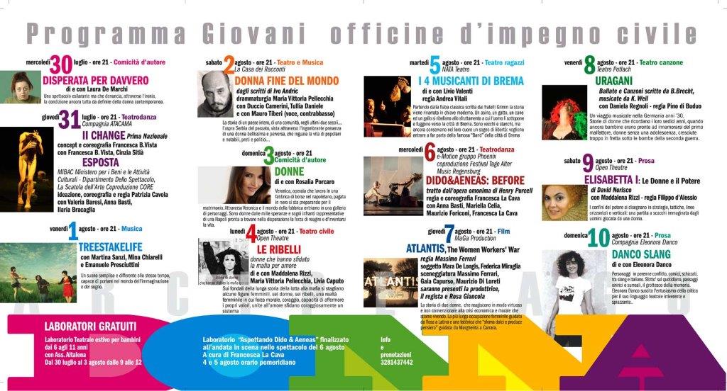 Dopo il significativo momento del murales anti-mafia, il Parco della Collina della Pace ospita una rassegna all’insegna della cultura e del teatro con “Arcipelago Donna 2014” a cura della Ass.ne Culturale “Tramartis”, con cui durante l’anno condividiamo tante iniziative culturali nei teatri della nostra periferia romana.