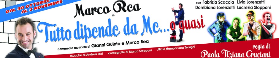 Dopo lo straordinario successo delle precedenti edizioni, il nostro amico Marco Rea, attore e ballerino, torna in scena al Teatro Roma con il divertentissimo musical “TUTTO DIPENDE DA ME (O QUASI)”, uno spettacolo innovativo con musiche che spaziano tra vari stili e ci raccontano la vita di uno spassoso idraulico con la passione per il ballo.