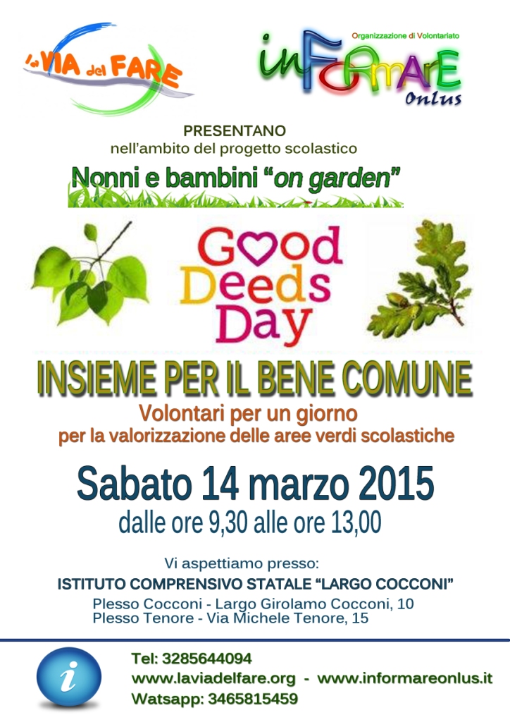 Sabato 14 marzo 2015 dalle ore 9.30 alle ore 13.00 l’Istituto Comprensivo “Cocconi”, una grande scuola storica del Municipio V, apre le porte a tutti i volontari che aderiscono alla giornata nazionale “Insieme per il bene comune” promossa dalle associazioni “La VIA del FARE” ed “inFORMARE Onlus” e coordinata dal “CESV Lazio”, con il patrocinio del Ministero del Lavoro e delle Politiche Sociali.
