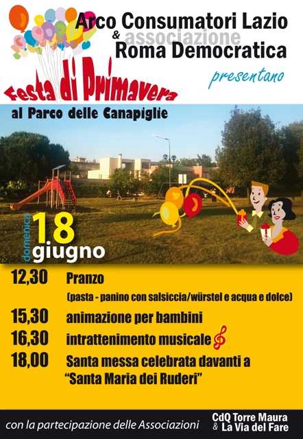 Amici della Via del Fare, vi aspettiamo domenica 18 giugno a Torre Maura, per passare una giornata in compagnia nel parco delle Canapiglie