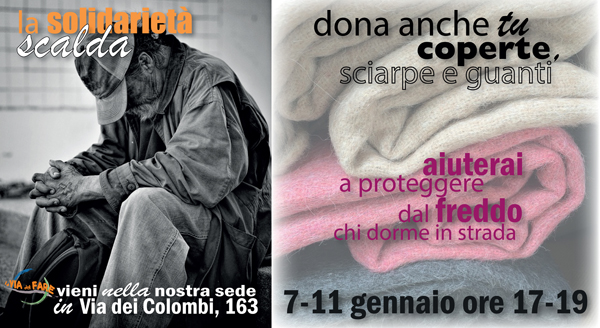 I volontari de La Via del Fare vi aspettano in Via del Colombi, 163 da lunedì 7 gennaio, fino alla fine della settimana, dalle ore 17 alle ore 19.