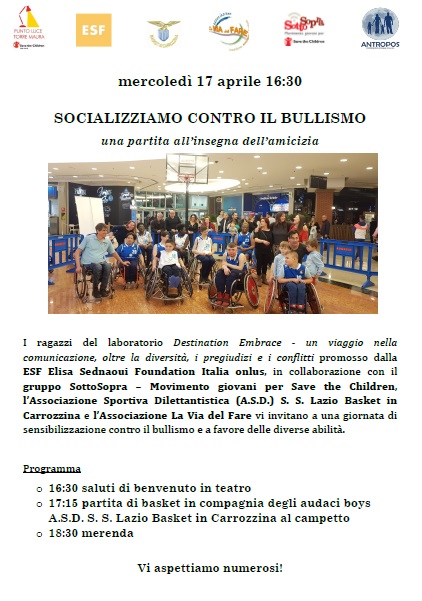 Partita speciale mercoledì 17 aprile al teatro del Punto Luce di Torre Maura. Una partita contro il bullismo, una partita per mostrare il vero volto di Torre Maura, solidale, accogliente e coraggiosa. Tutte le info sulla locandina. Venite numerosi!