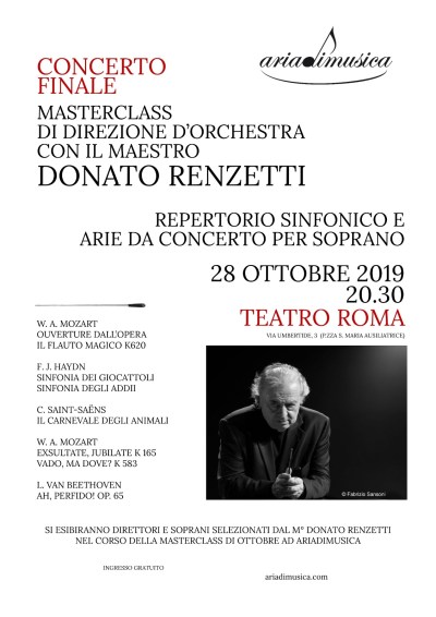 Siamo felici di girare ai nostri amici il loro invito al concerto di fine masterclass di direzione d’orchestra che si terrà lunedì 28 ottobre 2019 alle ore 20.30 al Teatro Roma in Via Umbertide 3 (Piazza Santa Maria Ausiliatrice).