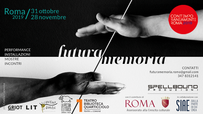FuturaMemoria, prodotto da Spellbound con la direzione artistica di Valentina Marini, dal 31 ottobre al 28 novembre 2019, vede protagonisti molti luoghi del Municipio V, dal Teatro Biblioteca Quarticciolo a La Pecora elettrica, dal Centro Anziani Villa Gordiani al Mercato Iris, da La Cantina di Dante al Mercato Villa Gordiani.