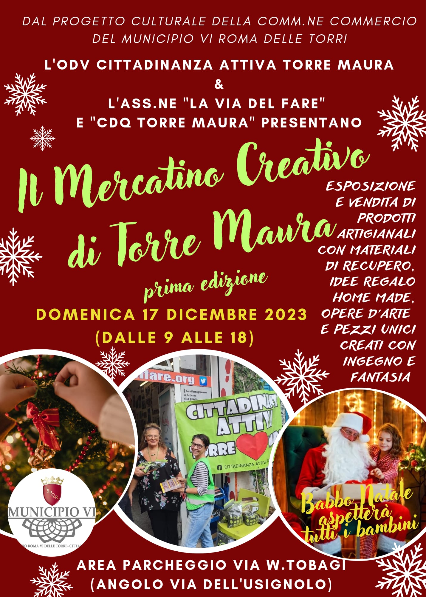 Domenica 17 dicembre 2023 – Sarà un giorno di festa, non solo per il vicino Natale, ma perché saremo testimoni della nascita di un nuovo momento di aggregazione e socialità nel territorio della nostra periferia romana, adatto per stare insieme piacevolmente e creare una solida rete tra cittadini.