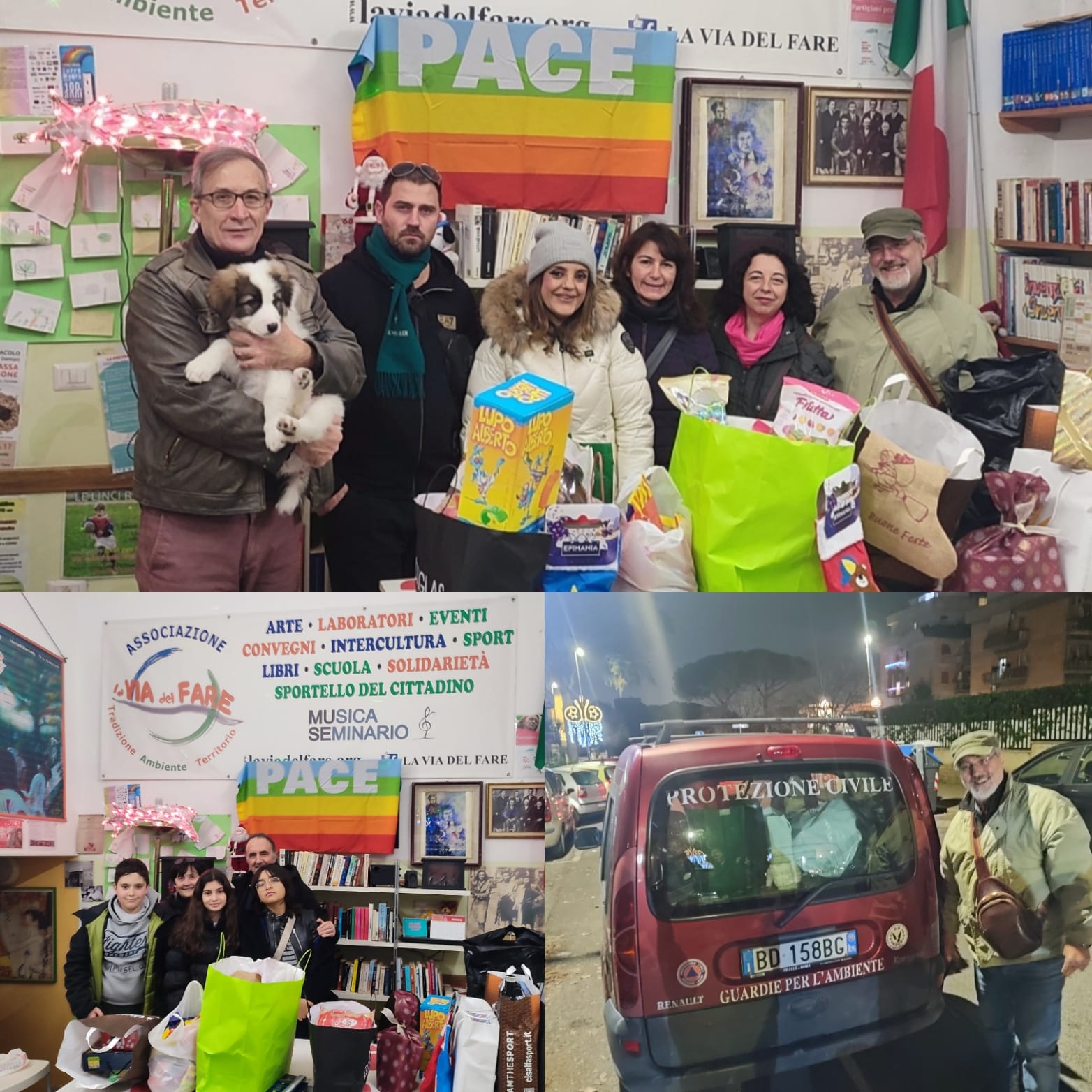 Potrete portare generi alimentari durevoli, dolci per bambini, giochi di società e libri per ragazzi, come espressamente indicato nella locandina allegata, presso la ns sede di Via dei Colombi n.163, ESCLUSIVAMENTE nei pomeriggi dei giorni:
