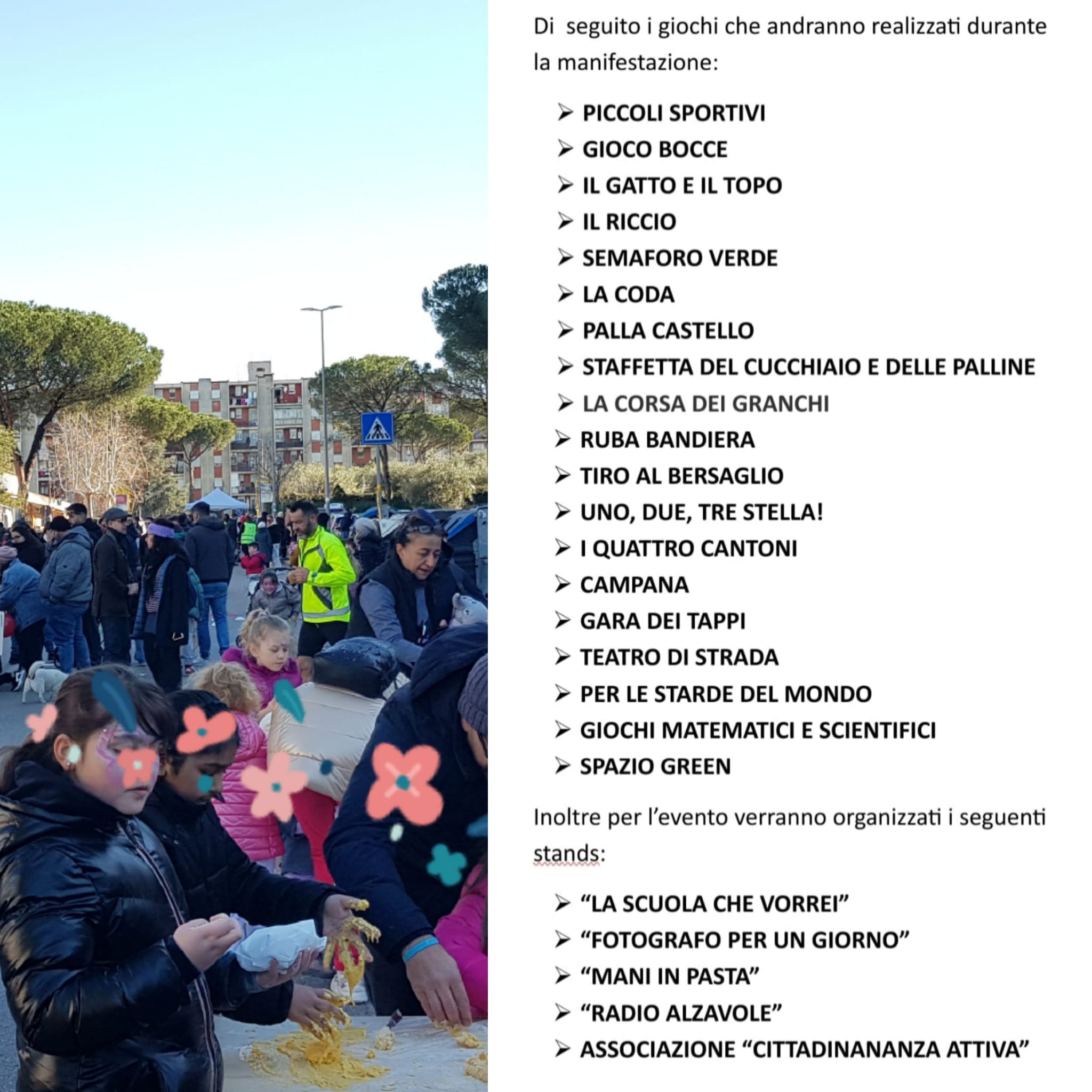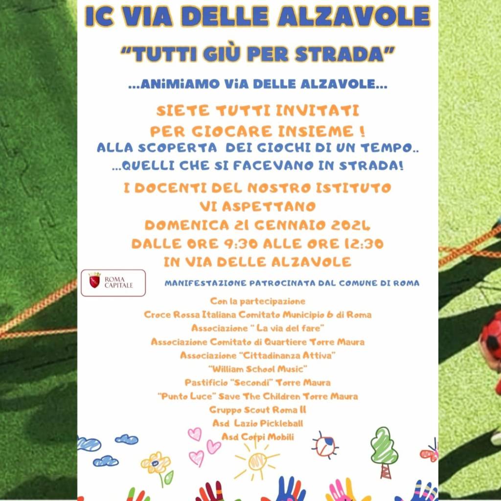 21 gen 2024 – Un grande successo per l’evento “TUTTI GIÙ PER STRADA”, organizzato dall’I.C.Via delle Alzavole di Torre Maura, in rete con tante realtà del nostro stesso quartiere.