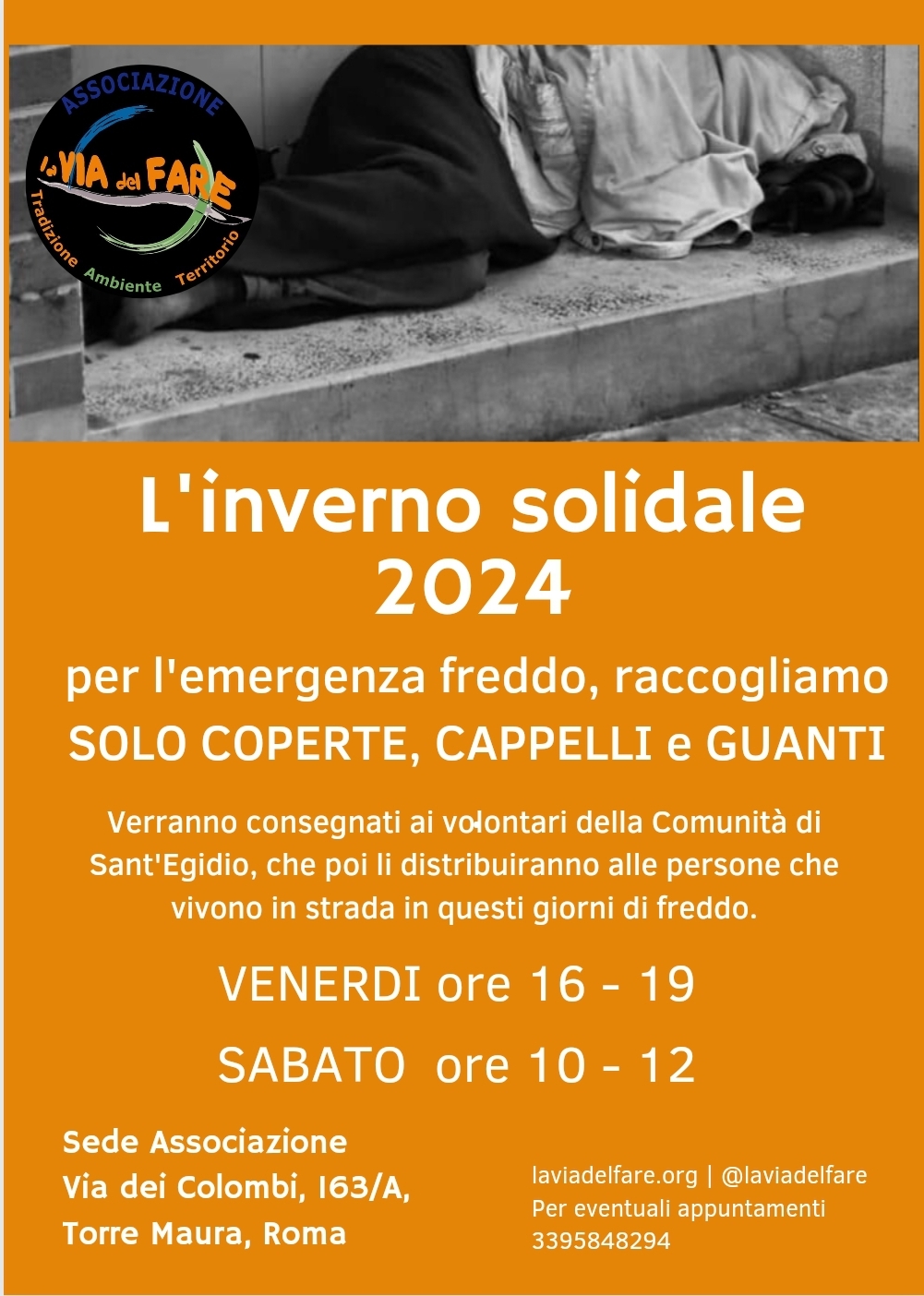 Gennaio – febbraio 2024 – La solidarietà ha sempre avuto un posto in primo piano ne #laviadelfare e per questo è stato immediato il metterci a disposizione con le nostre risorse, per supportare concretamente altri Enti od Organizzazioni che operano direttamente a Roma nelle fasi di distribuzione dei beni primari, necessari alla sopravvivenza di chi vive nell’estrema precarietà.
