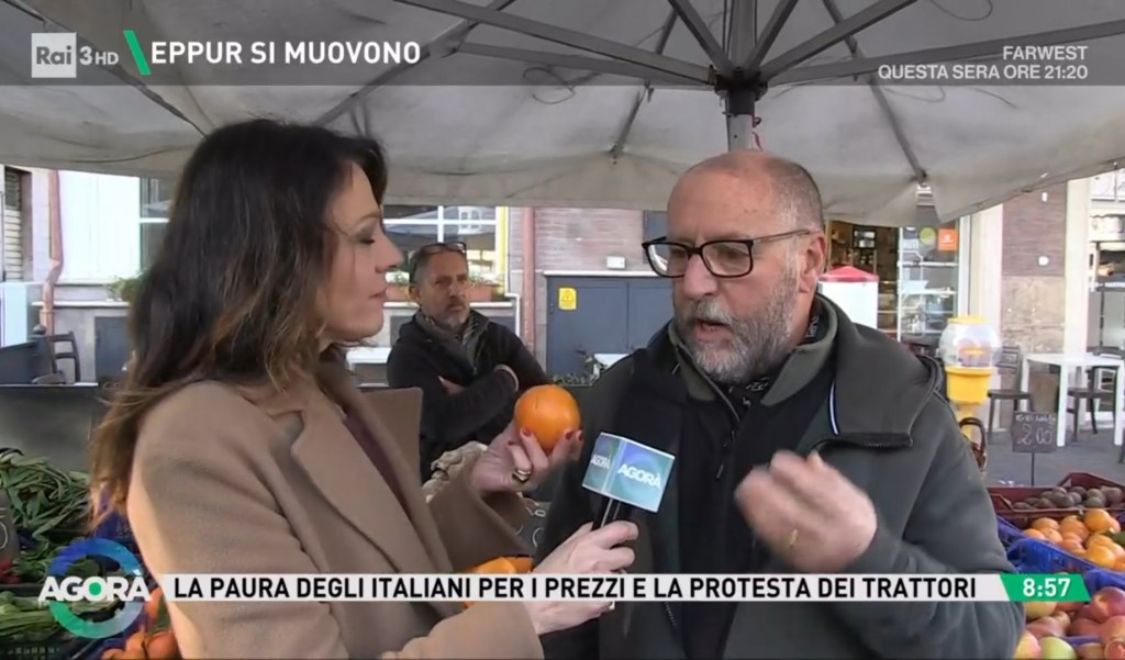 Oltre al tema della desertificazione commerciale c’e’ stata poi anche l’intervista ad uno dei titolari di banchi, ortofrutticoli del mercato di zona, trattando nella puntata andata in onda, l’argomento centrale dei possibili rincari dei prezzi dei prodotti in seguito all’impatto delle proteste degli agricoltori in strada con i loro trattori.