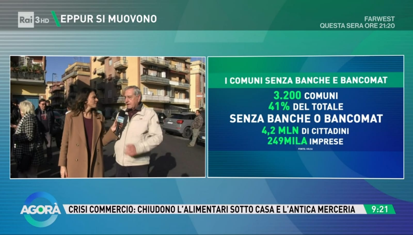 Roma, 12 febbraio 2024 – A seguito della grande risonanza di un post sui social, nella rubrica territoriale del #caffèdelconsigliere, dove si parlava della triste chiusura di una delle attività storiche del quartiere, la giornalista Barbara Gubellini, con la redazione della trasmissione AGORÀ di RAI3, hanno pensato di coinvolgere i cittadini di Torre Maura nella diretta live di una puntata della seguitissima trasmissione RAI, sul tema della crisi del commercio di prossimità e la desertificazione sia commerciale che dei servizi essenziali.