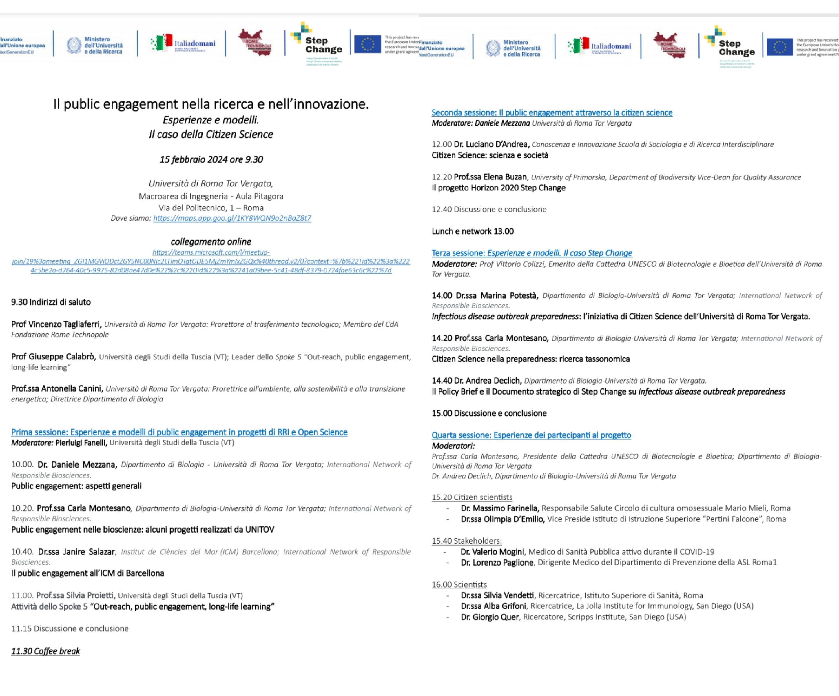 L’evento è stato promosso dal Dipartimento di Biologia ed è organizzato nell’ambito dei progetti PNRR – Rome Technopole, e Step Change, finanziati entrambi dall’Unione Europea.