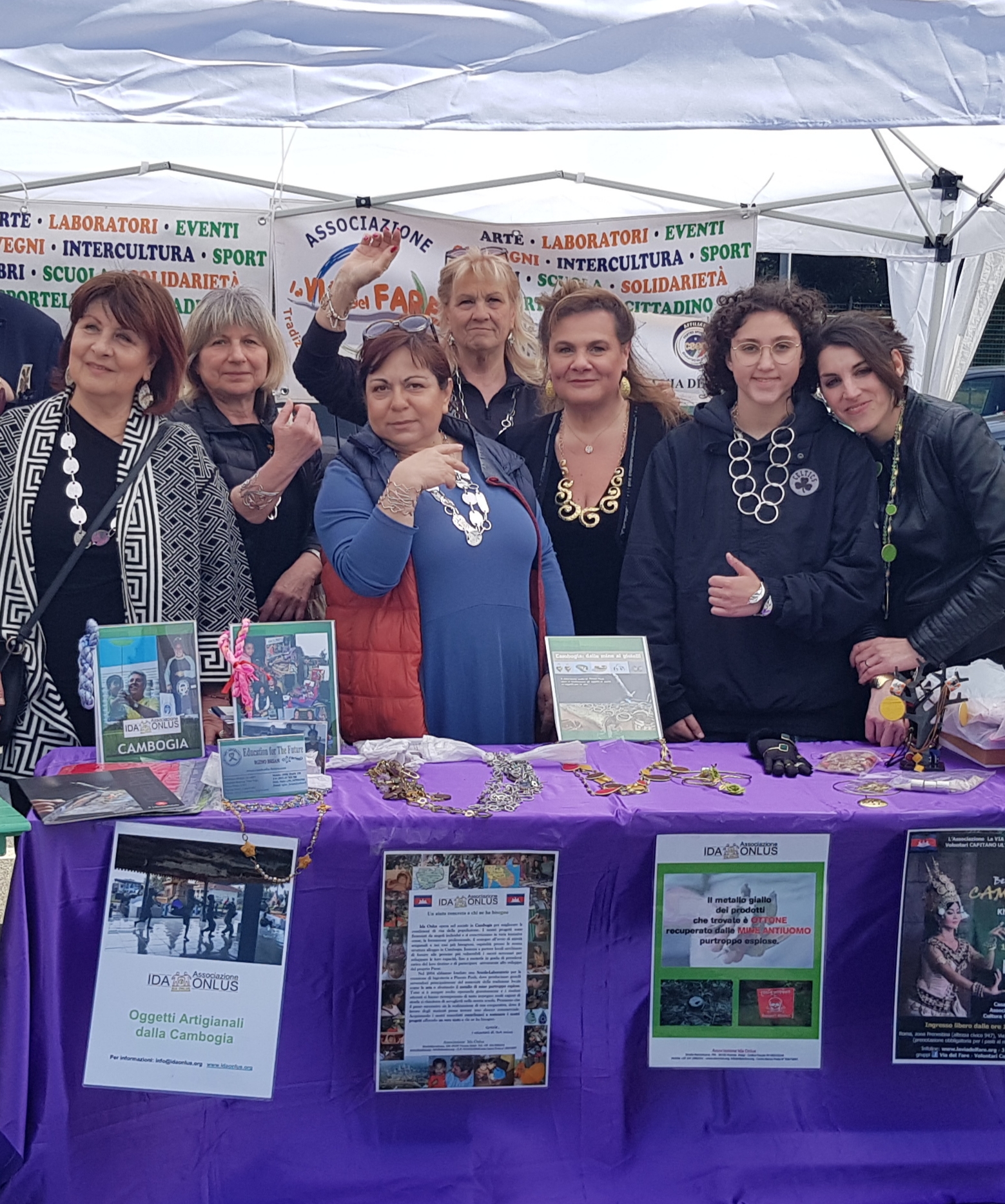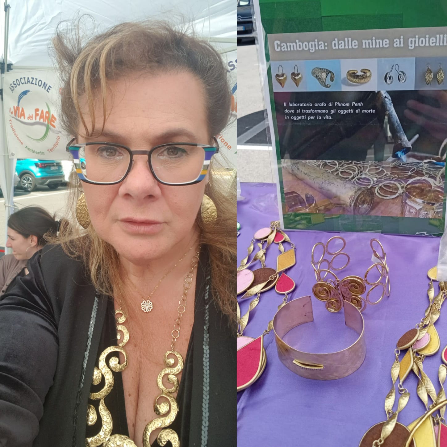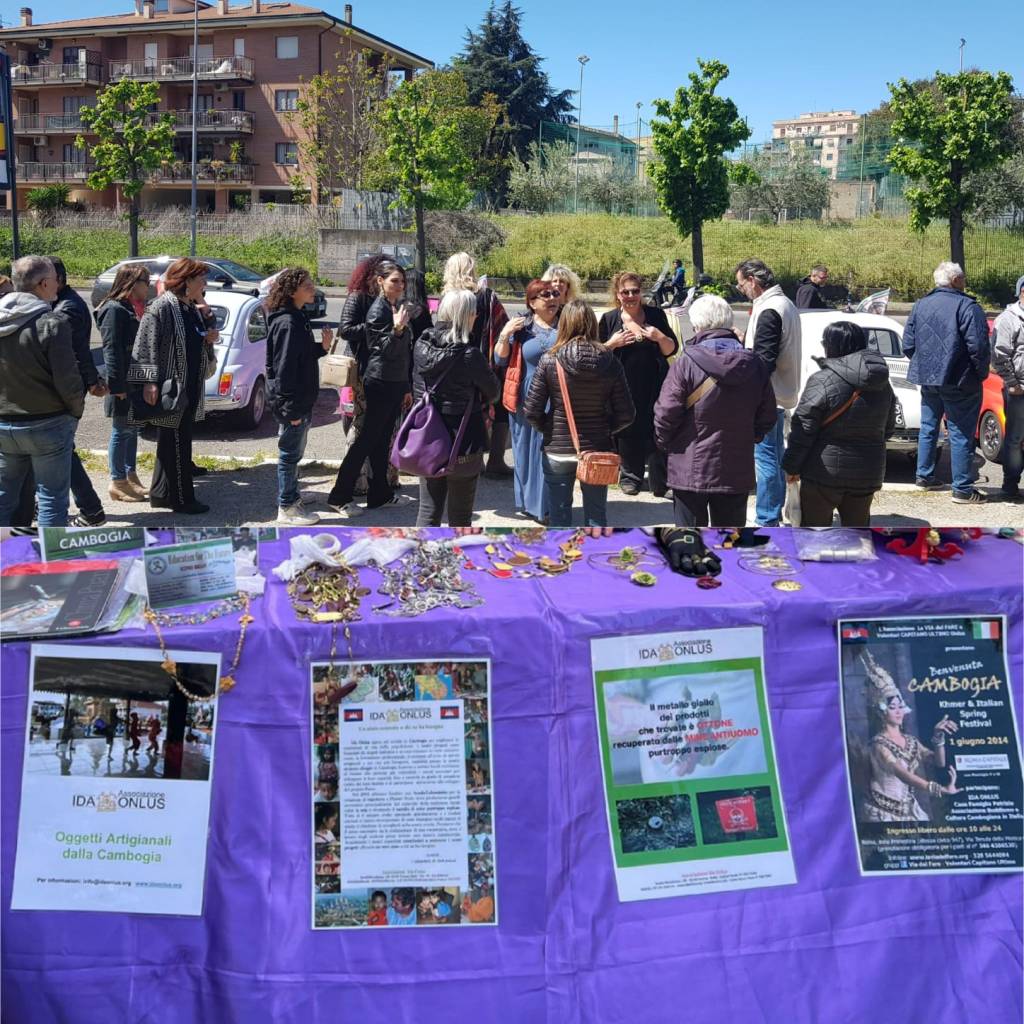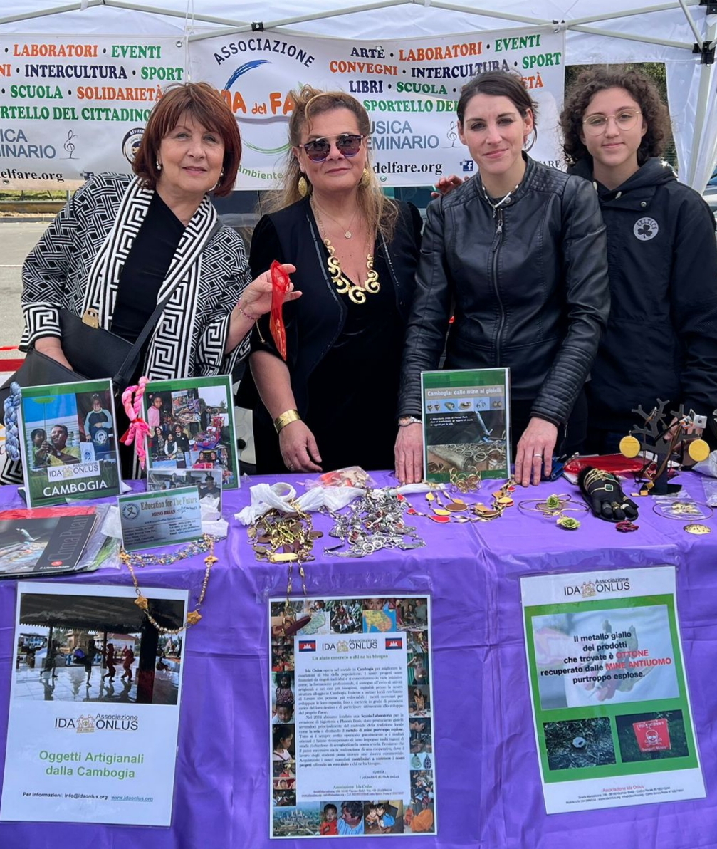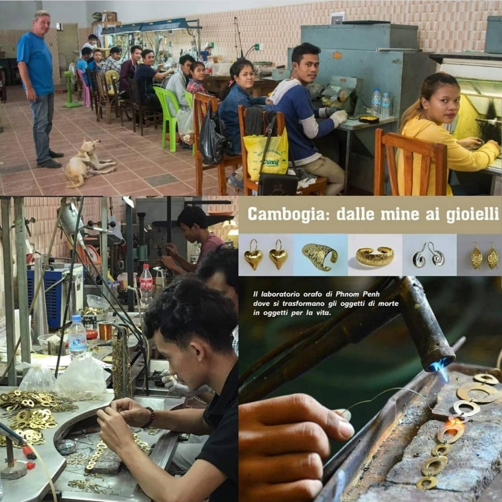 Per far conoscere meglio la bellezza di queste lavorazioni orate, si è organizzata, in questa edizione del Mercatino creativo, una divertente 👉🏽SFILATA dei GIOIELLI con le DONNE👈🏽, che hanno indossato e valorizzato con grande disinvoltura e simpatia, i pezzi unici artigianali di @IDAONLUS, facendo apprezzare a tutti i presenti la bellezza di questi gioielli artigianali cambogiani, realizzati col metallo di riciclo degli ordigni bellici e delle mine esplose, rimaste purtroppo ancora molto presenti nei campi in Cambogia, come triste eredità degli eccidi che sterminarono la popolazione sotto il regime dei Khmer rossi, fino al 1979.
