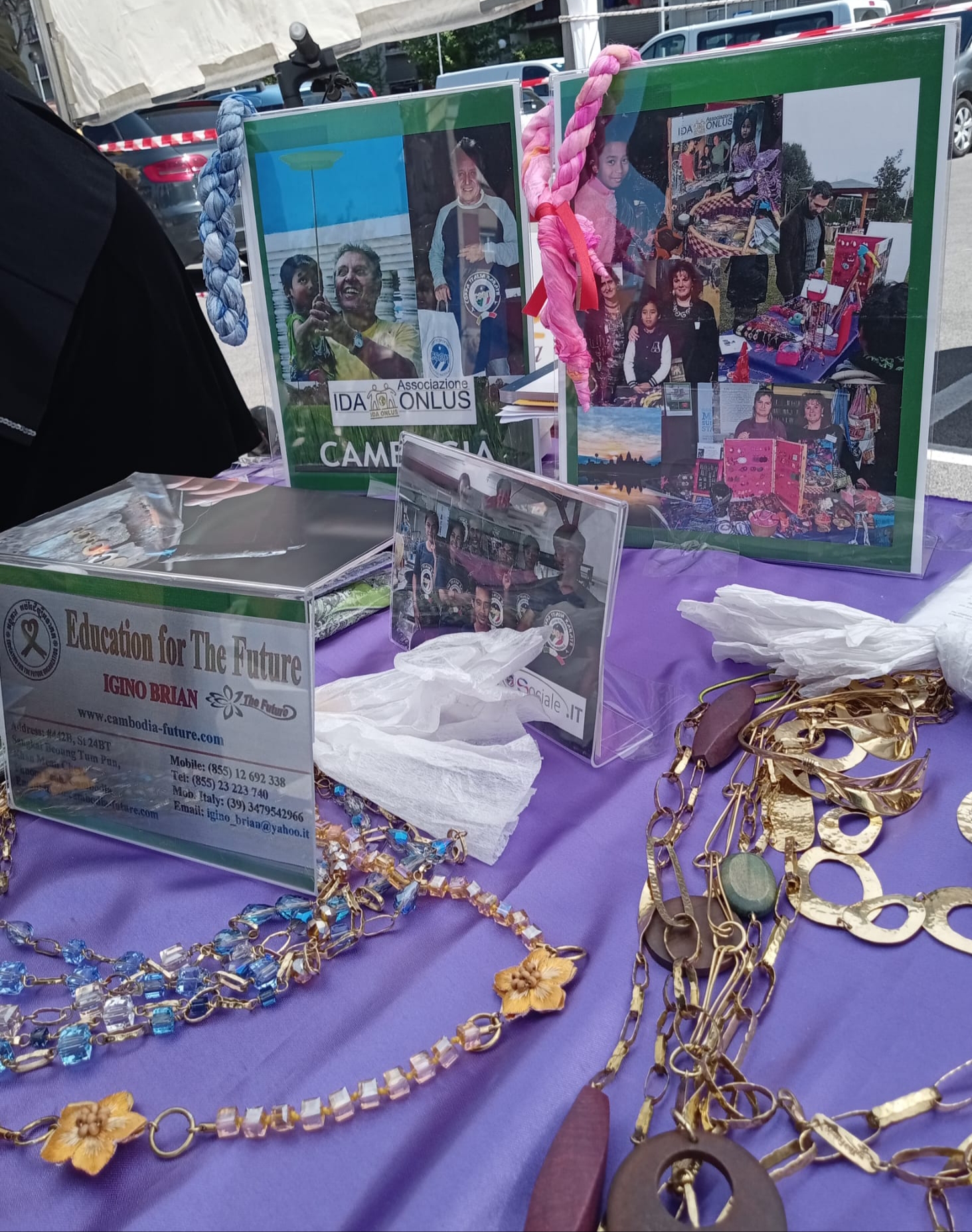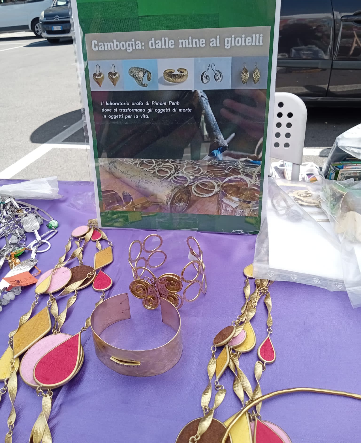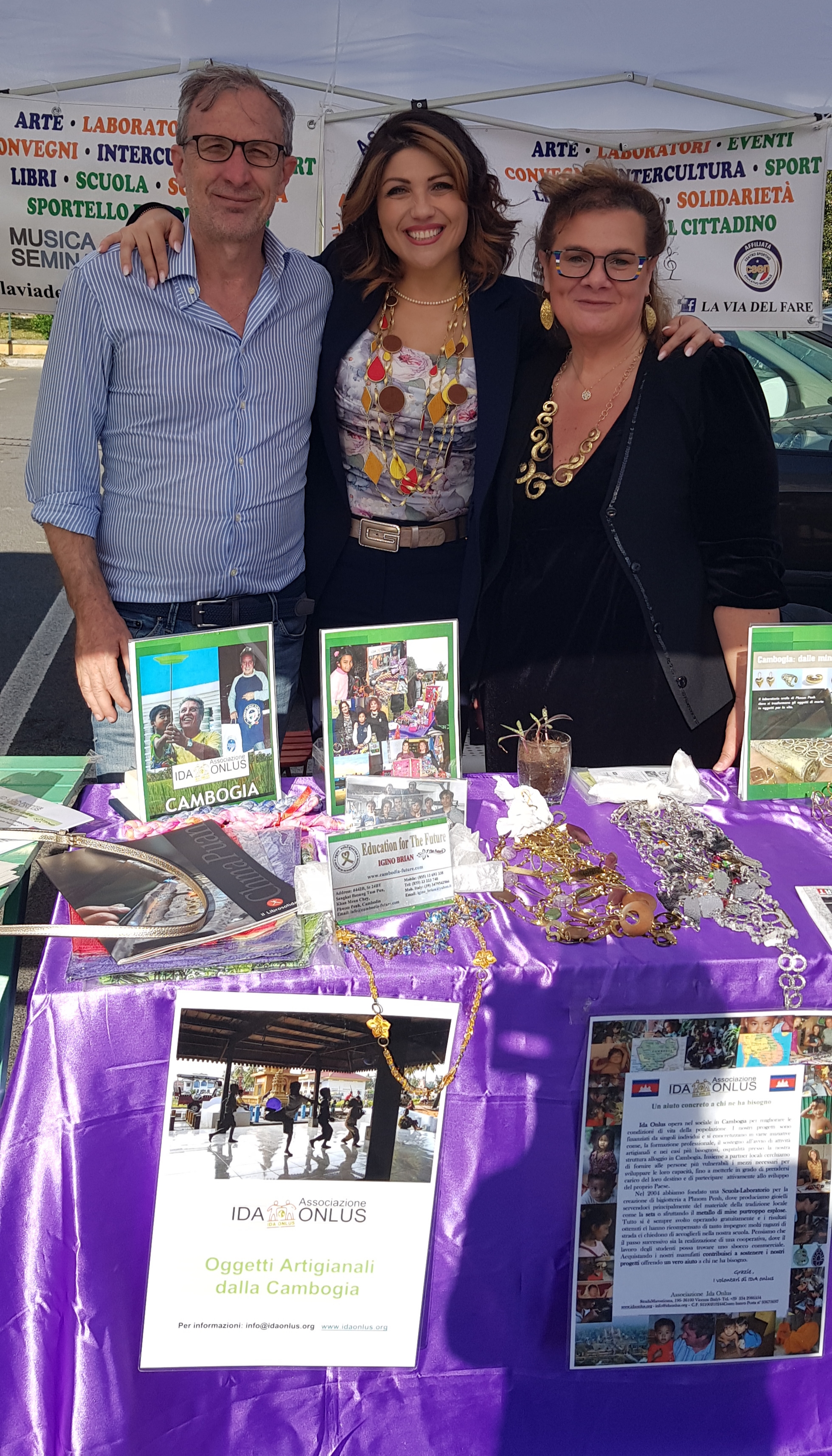 Tra i tanti stand dei creativi del quartiere, c’era anche l’esposizione dei lavori artistici della scuola orafa di @IDAONLUS, in gemellaggio con “La Vita del Fare”, ideata e condotta dall’orafo veneto Igino Brian, che da oltre 20 anni, insegna il suo mestiere prezioso ai ragazzi di strada cambogiani, affinché diventino a loro volta abili artigiani e possano sostenersi autonomamente col proprio lavoro.