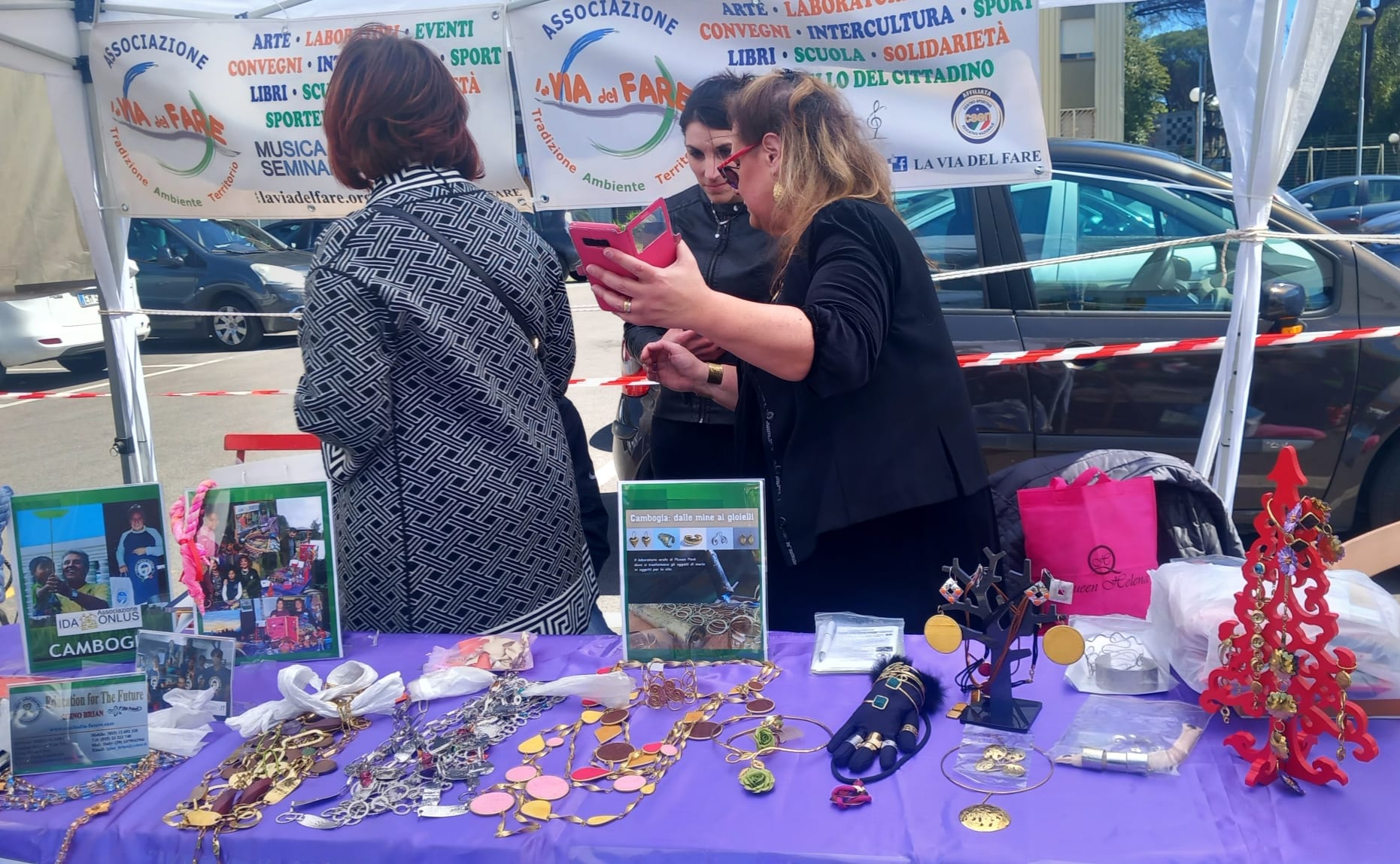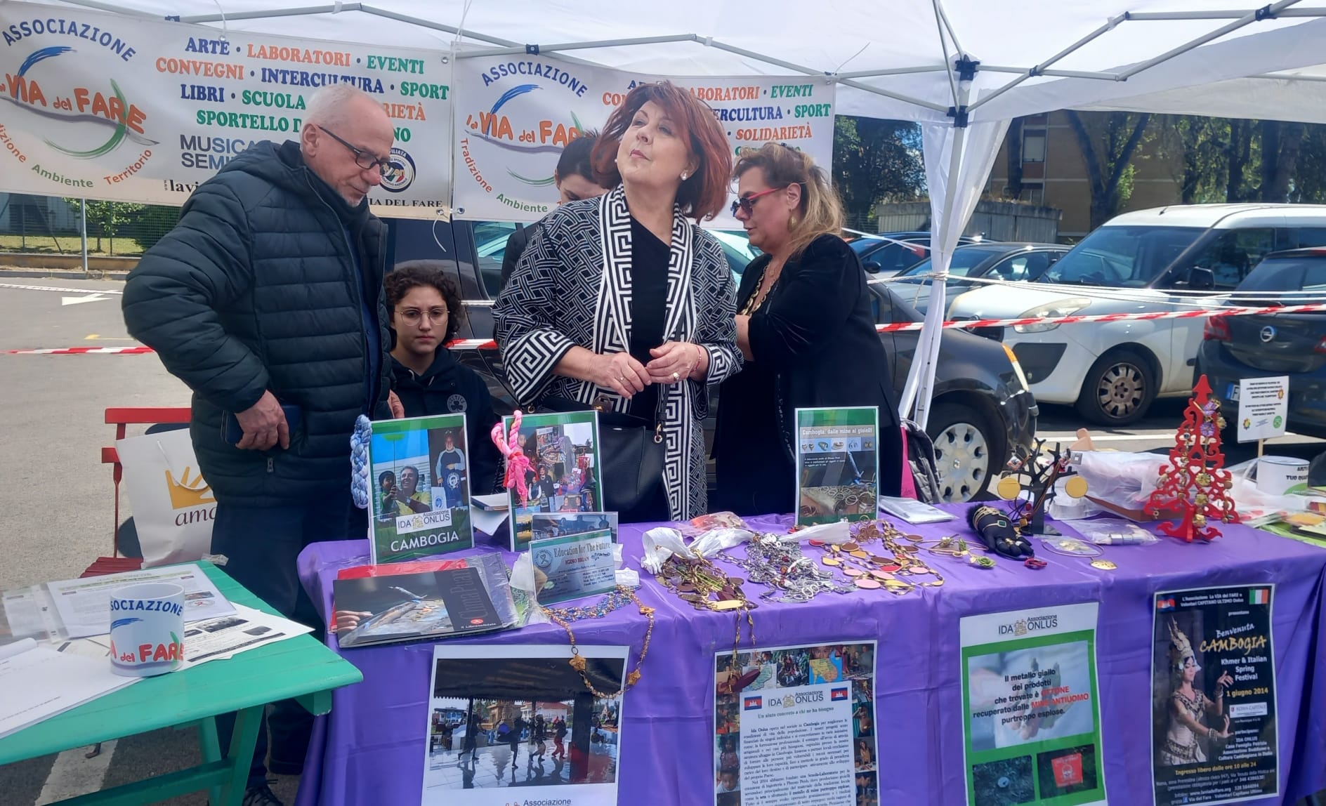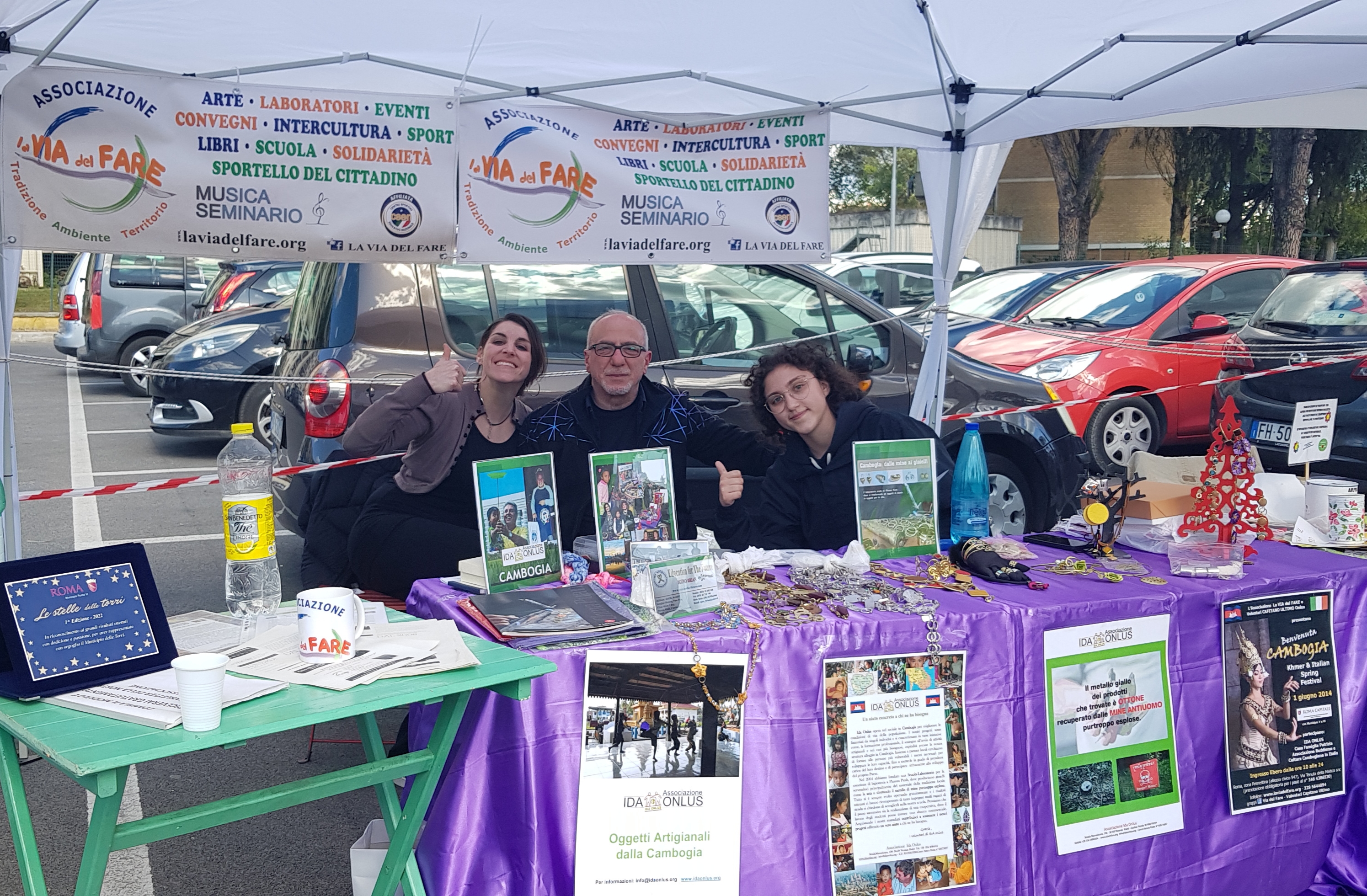 Tra i tanti stand dei creativi del quartiere, c’era anche l’esposizione dei lavori artistici della scuola orafa di @IDAONLUS, in gemellaggio con “La Vita del Fare”, ideata e condotta dall’orafo veneto Igino Brian, che da oltre 20 anni, insegna il suo mestiere prezioso ai ragazzi di strada cambogiani, affinché diventino a loro volta abili artigiani e possano sostenersi autonomamente col proprio lavoro.