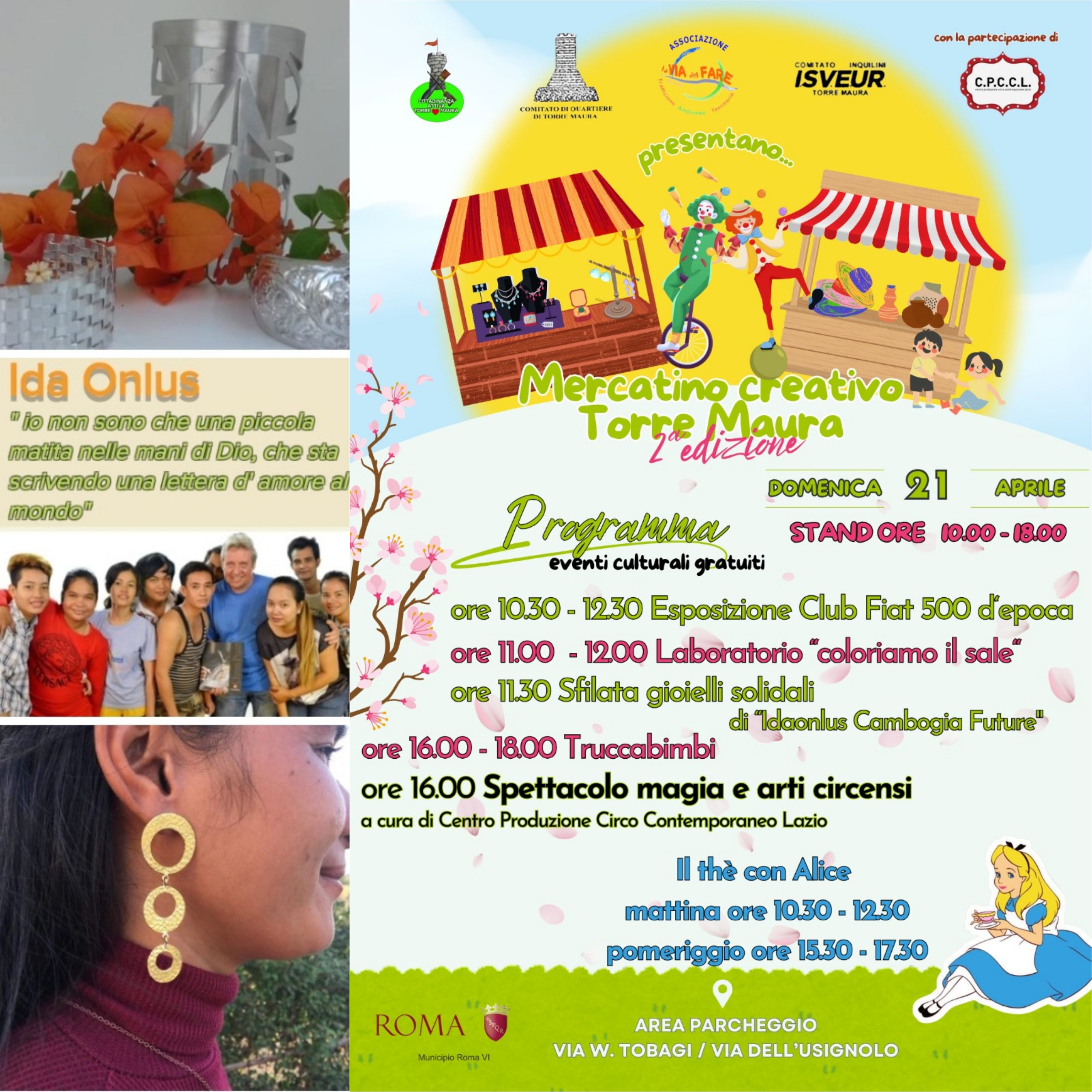 Domenica 21Aprile 2024🌺 il 2°appuntamento del “MERCATINO CREATIVO TORRE MAURA”, il progetto culturale della Commissione Commercio del Municipio Roma VI delle Torri, che ha voluto creare una rete virtuosa tra le realtà più attive di un quartiere come Torre Maura, è stato anche l’occasione di mettersi in gioco, con un sorriso, a favore della solidarietà.
