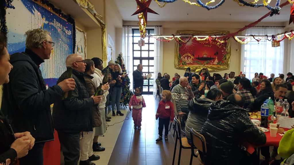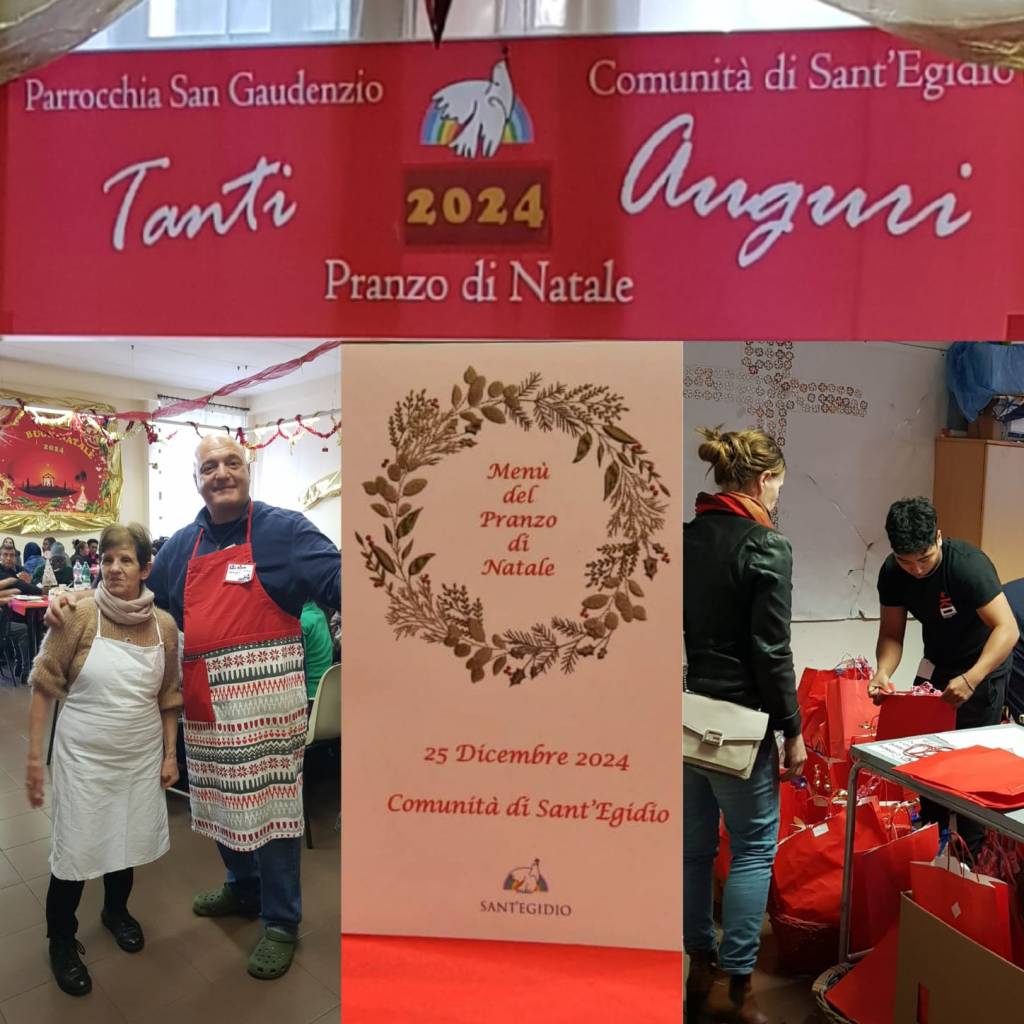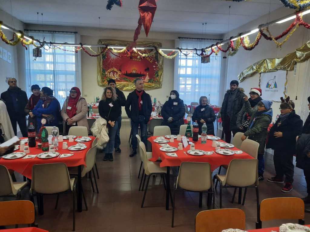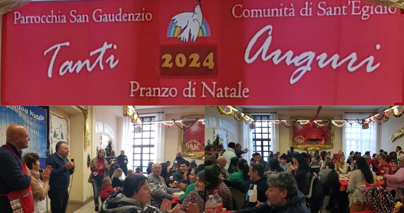 Persone fragili, senza fissa dimora, poveri, anziani soli, rifugiati internazionali, persone che hanno bisogno di sentire la città vicina, di sentire un calore familiare e l’inclusione, riuniti intorno a grandi tavolate che hanno la forza di unire tutti, senza escludere nessuno e qui alla Parrocchia di San Gaudenzio a Torrenova, erano riuniti a tavola oltre 300 amici in compagnia festosa di tantissimi volontari che, come noi, hanno vissuto la gioia del Natale, in un modo semplice di “FARE INSIEME”.