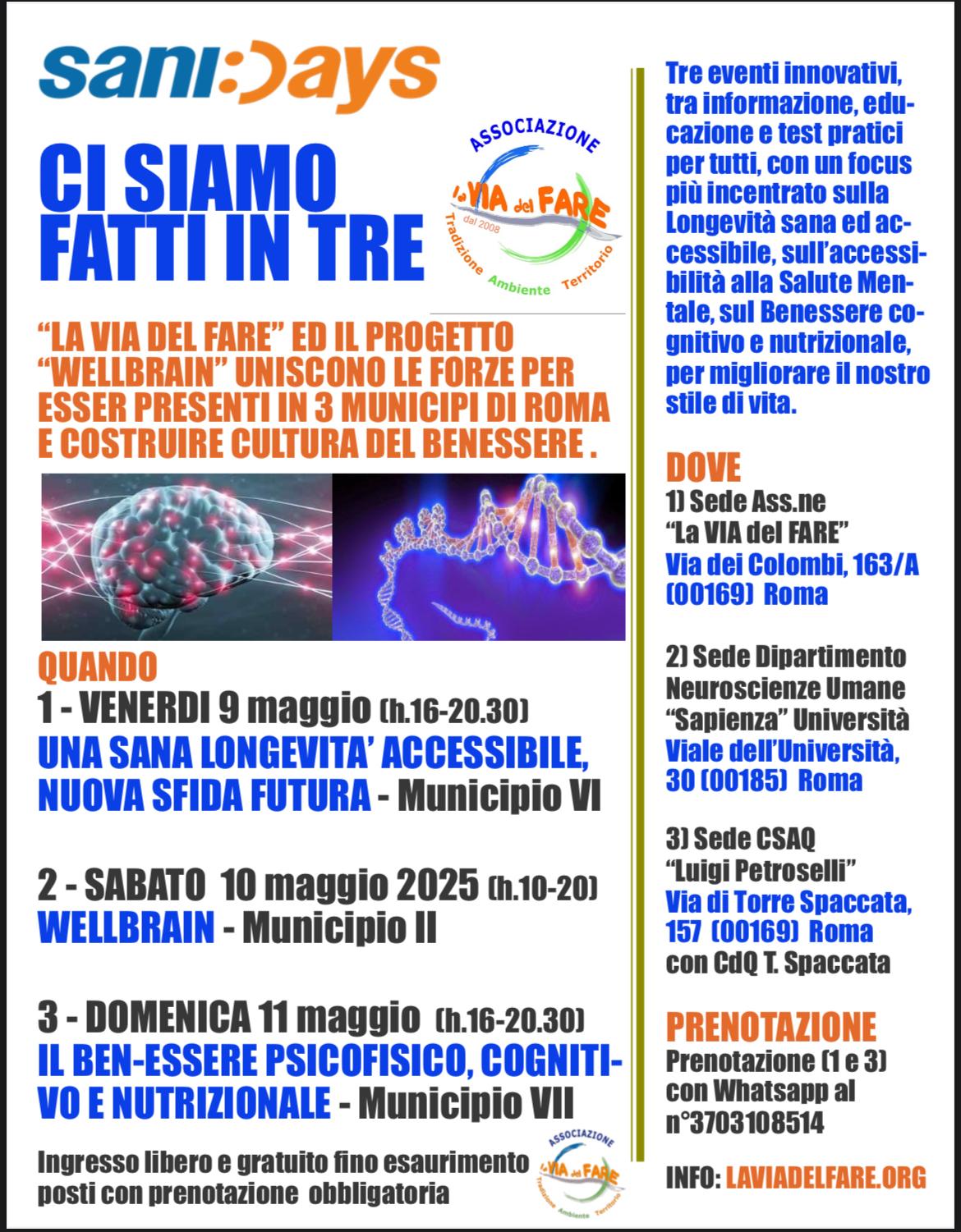 “La VIA del FARE” ed il progetto “WellBrain” uniscono le forze per esser presenti in tre Municipi di Roma e costruire una cultura del benessere davvero inclusiva.