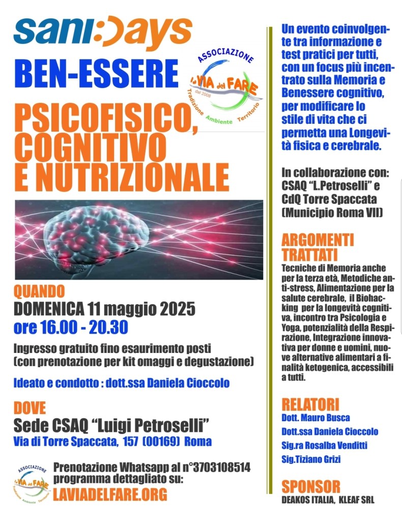 Alleghiamo anche la Locandina ufficiale dell’evento mentre il programma dettagliato sul sito dedicato WellBrain(https://sanidays.it/wellbrain-promuovere-la-cultura-del-benessere-psicologico/)