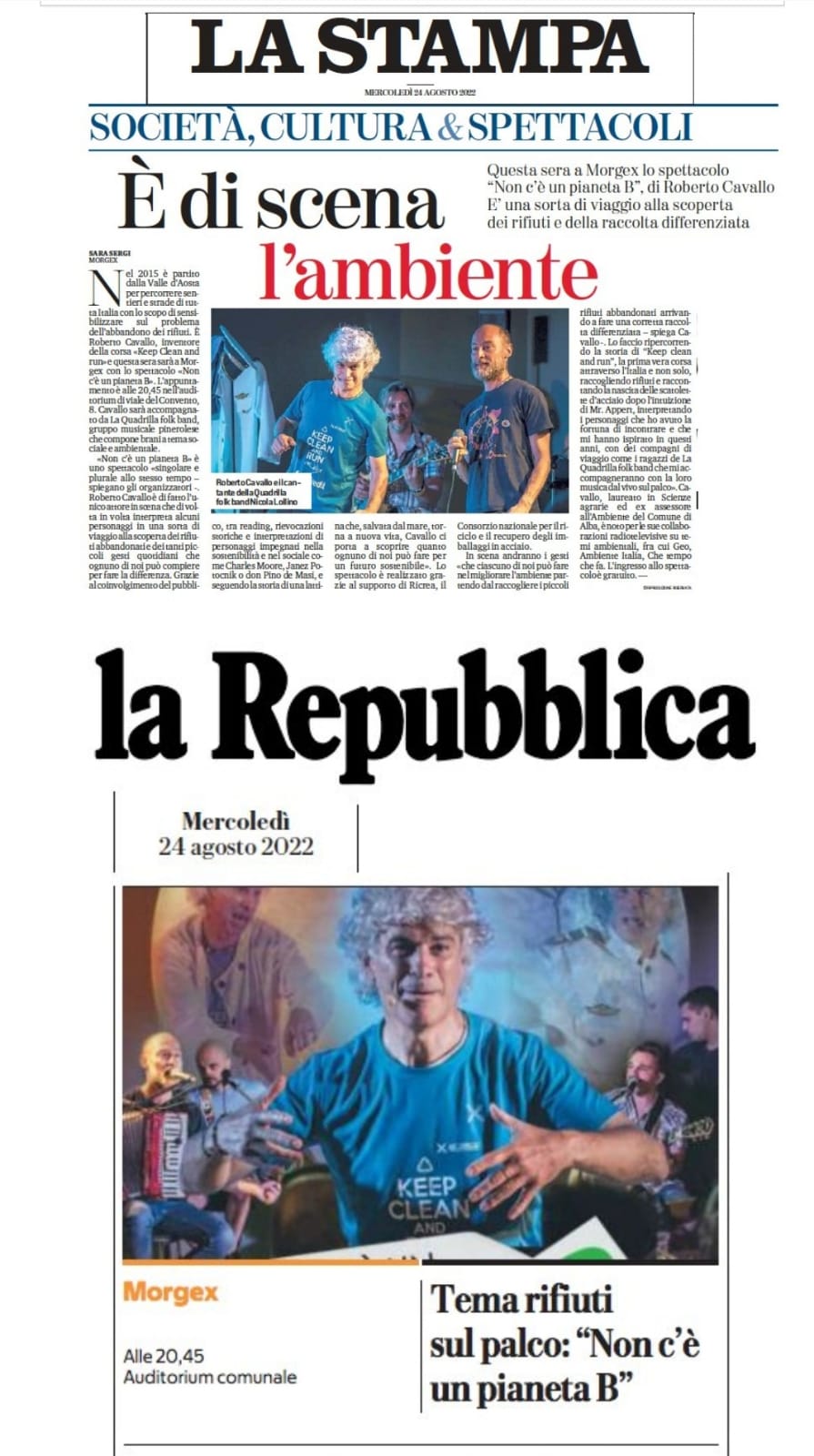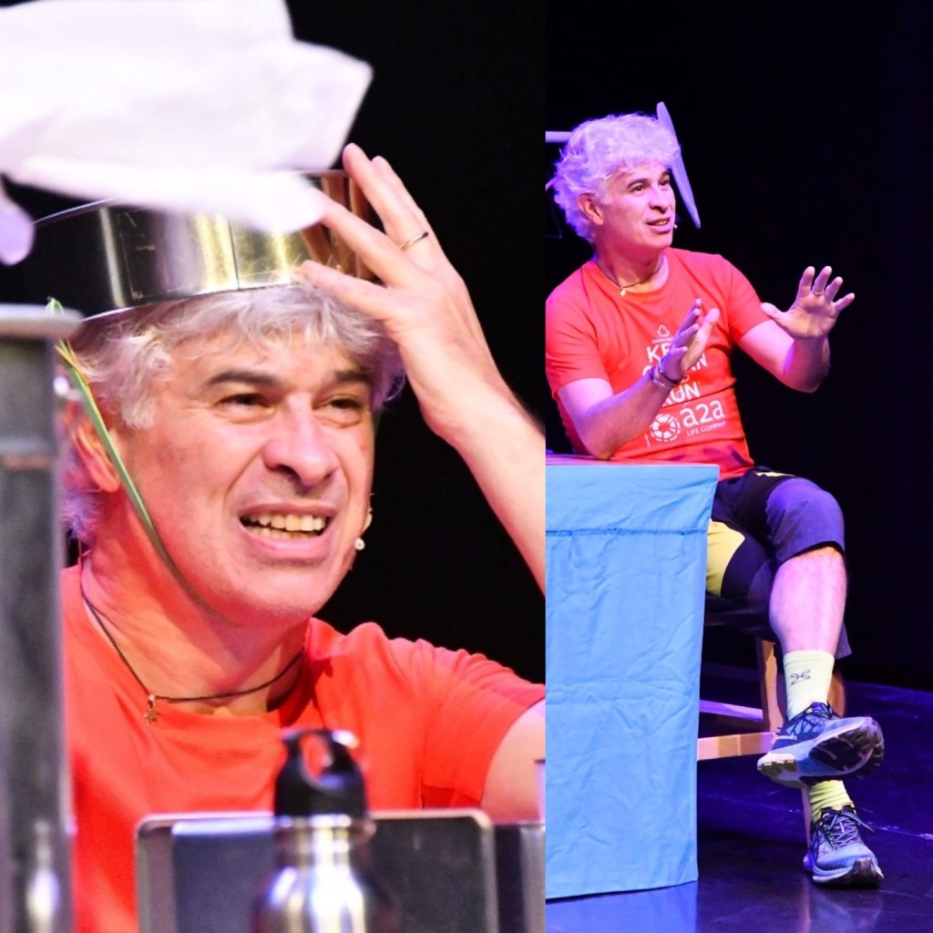 Questo nuovo spettacolo parte dalla missione di “Keep Clean and Run“, che è quella di correre e raccogliere rifiuti, su e giù per l’Italia, per sensibilizzare sul problema dell’abbandono dei rifiuti e che e’ diventato anche una storia da raccontare sul palco.